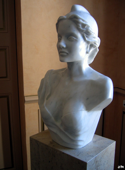 Cette Marianne a été inaugurée le 14 Juillet 2008 , réalisée par le sculpteur Jonathan qui a pris pour modèle, une jeune lorguaise, Cécile Pelletier .