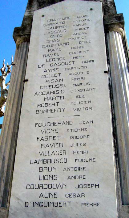 Sur trois des faces du monument sont gravés les noms des 93 morts lorguais de la Première Guerre Mondiale.