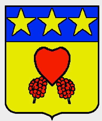 Armes : D'or, à un coeur de gueules, soutenu de deux mûres au naturel, inclinées en chevron ; au chef d'azur, chargé de trois étoiles d'or.