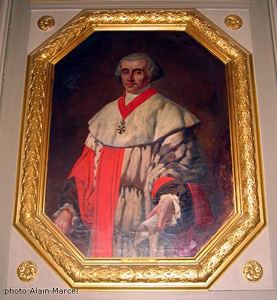 A l'extrémité de la galerie des bustes, après le débouché de la galerie Saint-Louis, dans le bâtiment néogothique, un prolongement donne accès aux trois bureaux de présidents de chambre. Cette partie de la galerie est ornée de portraits dont celui-ci réalisé par Jules Quantin en 1877. |