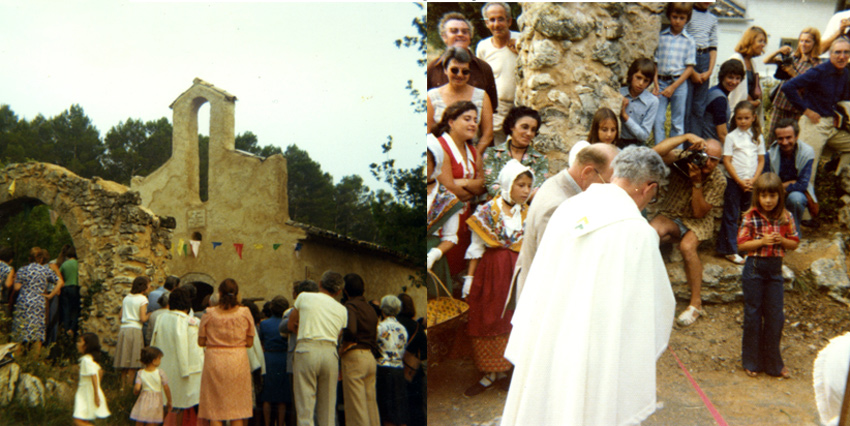 Dimanche 16 août 1976, inauguration de la chapelle restaurèe. M. Richez , représentant la Mairie et l’Association des Amis de Saint Ferréol et le père Rémy Munsch, curé de Lorgues, coupent ensemble le ruban.