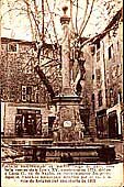 Construite en 1771 par l'architecte Torcat elle est ornée de quatre dauphins du sculpteur Joseph Chieusse et de plaques en marbre gravées en latin qui commémorent certains évènements de l'histoire lorguaise, ainsi que du blason de la la ville avec sa devise" force et fidélité", vertues simbolisées par un lion et un chien. Derrière la fontaine, la place du Révelin, mot qui désignait