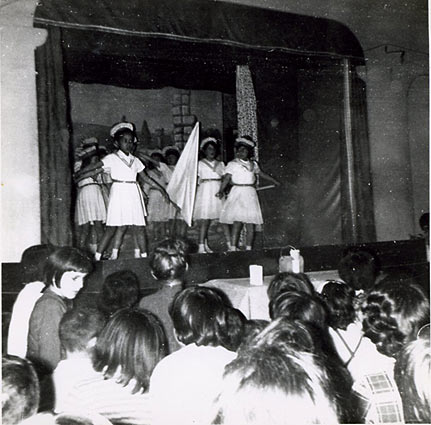 Spectacle de fin d'année par les "Cigales Lorguaises" dans le petit théâtre des soeurs. Années 60