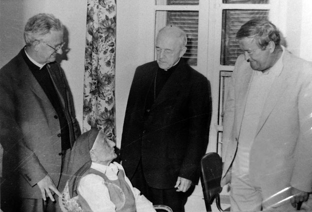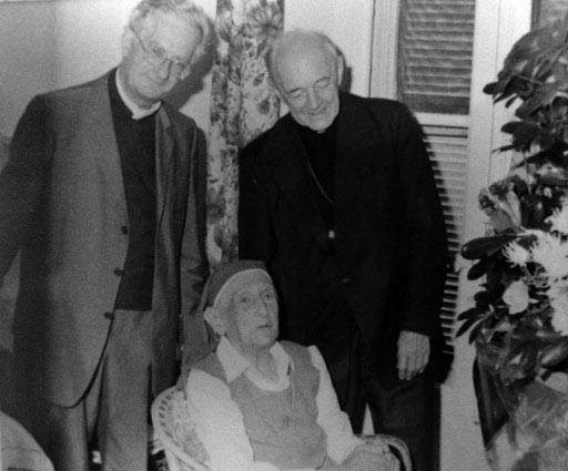 Centenaire d'une soeur, entourée du Pére Rémy Munsch curé de Lorgues, Mgr Gilles Barthe évêque de Fréjus-Toulon, André Négrel maire de Lorgues.