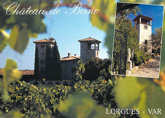 Le château de Berne s’étend sur près de 600 hectares entre Lorgues et Flayosc et compte 120 hectares de vignes. On reste confondu lorsqu’on lit l'historique farfelu que l’on peut trouver sur le site web du domaine: « Marius Estellon, ancien capitaine de frégate de l’armée impériale… Véritable mécène, il donnait des fêtes grandioses qui profitèrent à toute la région et fabriquait sur place les faïences indispensables pour recevoir ses invités. » !! ou « .. au 12e siècle le Comte de Toulouse, Raymond V fit cadeau du domaine à Bernard de Clervaux,… En 1307, les terres furent confisquées par le roi de France, Philippe le Bel en faveur de familles nobles. » ( Nota : En 1307 la Provence n’était pas rattachée au royaume de France, elle ne le sera qu’en 1482 !) . Voir article : "In vino veritas ? " Au XXe siècle le domaine passera entre différentes mains : le docteur Angelin German, (médecin résistant et homme politique, maire de Flayosc de 1966 à 1995) l'achète en 1949 et le vendra en 1960 à Mme Smeets, PDG de la société publicitaire Jean Mineur. Celle-ci le modifie profondément et lui donne cette allure de demeure toscane avec ses tours. En 1985, un Anglais, Bill Muddyman, le rachète et replante 32 hectares, modernise les installations de vinification et reconstruit la cave. En 1995, il confie la direction du domaine à Didier Fritz en le chargeant de développer un concept hôtelier tourné vers le tourisme vigneron. En 2007, un homme d’affaire britannique, Mark Dixon, rachète le domaine. |