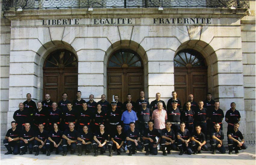 2005 Devant la mairie autour du maire Barthélemy Mariani et du chef de centre, le capitaine Jean-Michel Sorasso