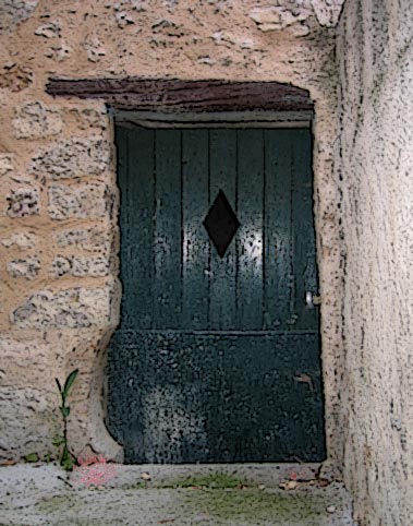 Porte de cave élargie dans le bas pour le passage des tonneaux