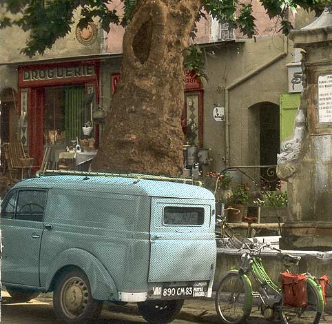 La droguerie-quincaillerie Musso, place du Révelin. Au premier plan la voiture de Raoul Limbron