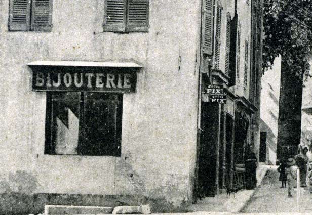 La bijouterie Gaiton, au coin de la rue et de la place de l'Église s'installera plus tard sur le Cours. L'emplacement sera occupé par la mercerie Gras.