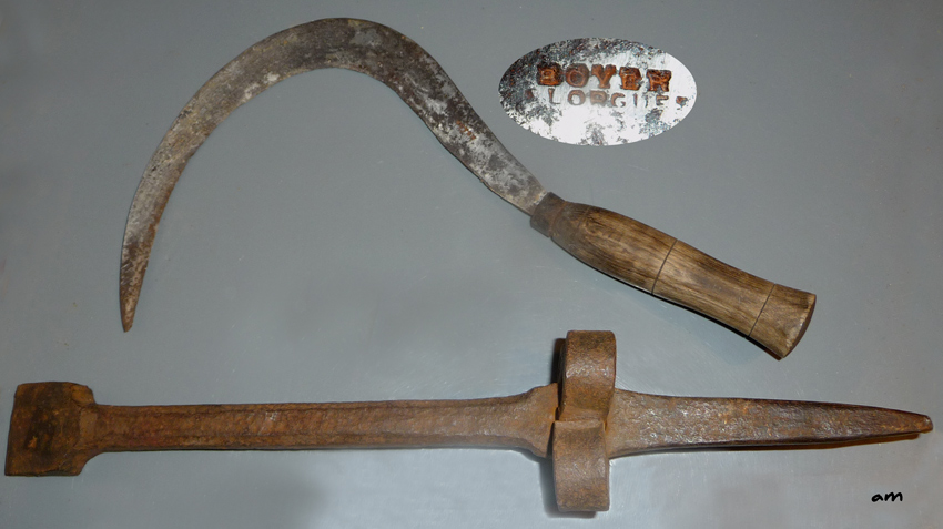 Faucille pour le blé signée BOYER LORGUES, avec son enclumette
