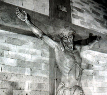 Placé en novembre 2004 sur la croix, un Christ en bois de tilleul, oeuvre d'un artiste italien Giuseppe Tuninetti , membre de l'Atelier du Groupe Liturgique d'Alberto Marinetto, à San Damiano d'Asti .
