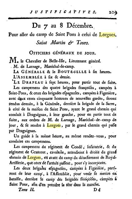 | Extrait de " Histoire des campagnes de M. le Mal de