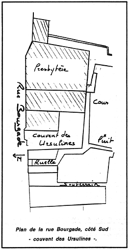 Le couvent fut construit au milieu de la rue de la Bourgade, là où