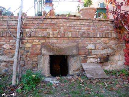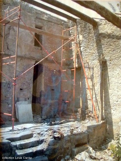 Transformation de l'ancienne usine en habitations. Ci-dessus démolition du four de cuisson pour créer une terrasse. A droite, la terrasse créée a conservé, en dessous, le foyer de chauffe où brulait le bois.